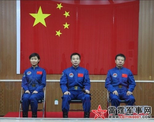 中国人民解放军航天员大队男航天员景海鹏、刘旺和女航天员刘洋组成“神九”飞行乘组,执行中国首次载人交会对接任务。