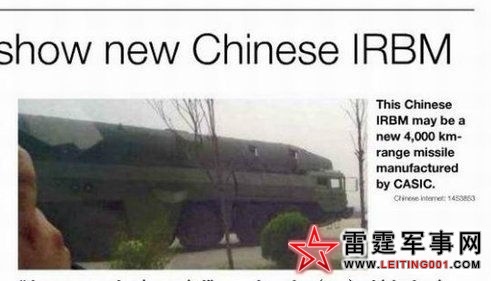 3月14日出版的《简氏防务周刊》载文关注中国新式弹道导弹(IRBM),原题:照片或显示出中国(研发)新型中程弹道导弹。